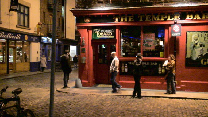 The Temple Bar section is named for The Temple Bar Pub — very confusing since Temple Bar would seem to be the name of the bar — but they have to add the Pub on the end since the area is named Temple Bar.