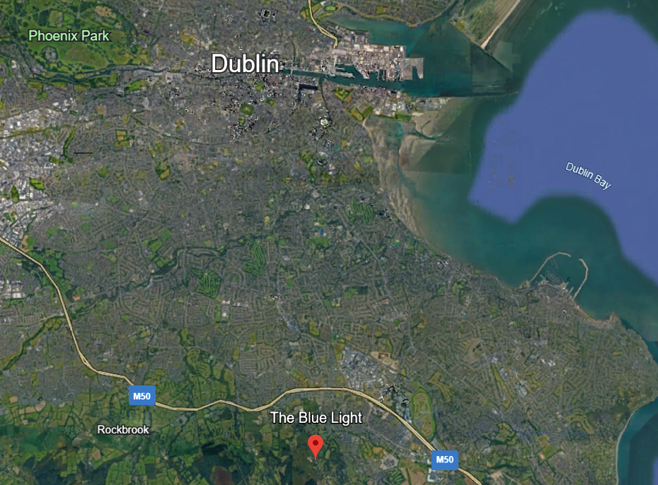 You need to take a cab to The Blue Light (unless you have rented a car for your stay in Dublin). It is a 30 minute drive (see map below to understand the distance).