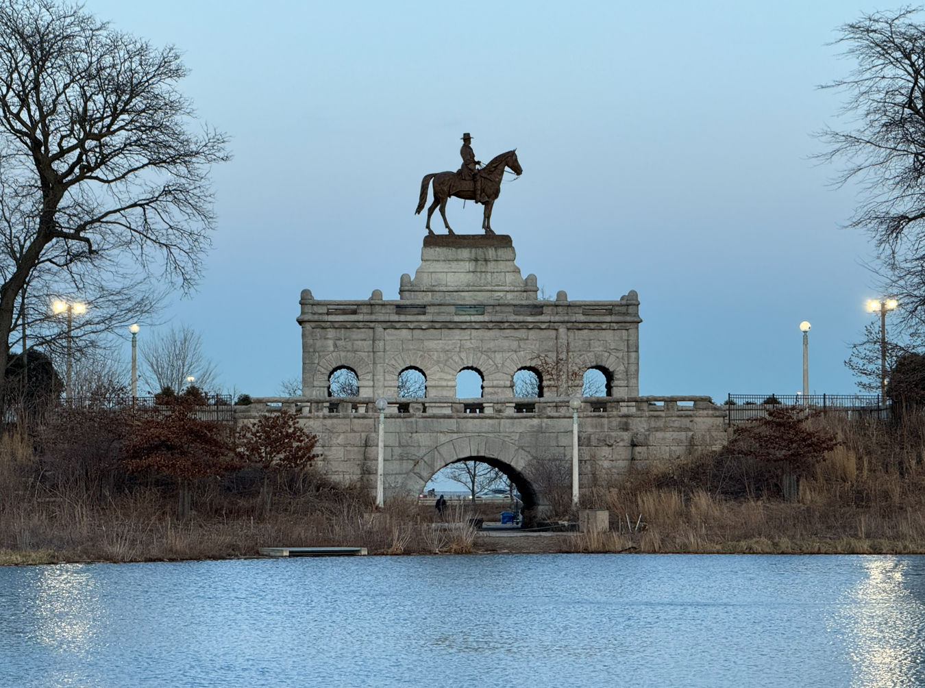 Lincoln Park itself was named after Abraham Lincoln — there is a statue of him sitting on a bench at the front of the park. There are also statues of Ben Franklin and of General Ulysses S. Grant on his horse inside the park.