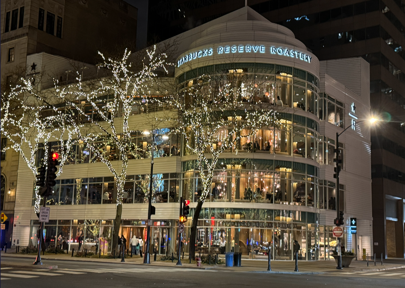 Starbucks has opened a 4-story modern glass building downtown on Michigan Avenue — at the start of the Miracle Mile — that offers alcoholic versions of its drinks on the 4th floor, unique drink experiences on its 3rd floor, a normal full-bodied Starbucks experience on its 2nd floor (with amazing deserts), and grab-and-go Starbucks on its bottom floor.