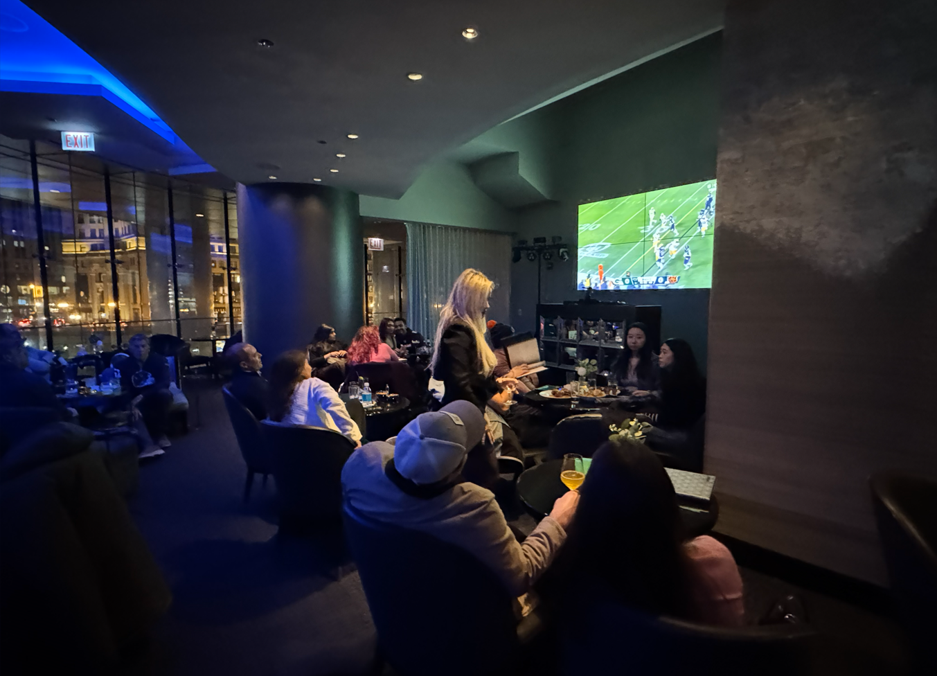 You can walk into the lobby and then head upstairs to the bar. When I was there with family in January, 2026, there happened to be a huge NFL wild card playoff game going on between the Chicago Bears and Green Bay Packers — which had a wild ending (Chicago scoring 2 touchdowns in the final minutes to turn a loss into a win).