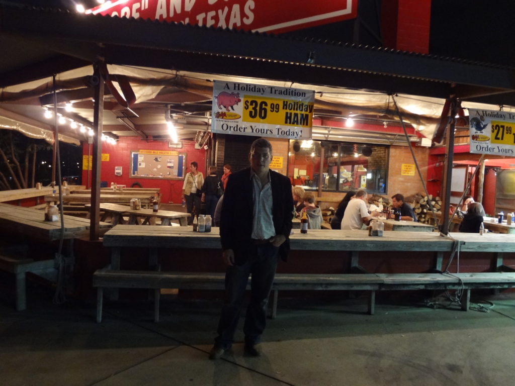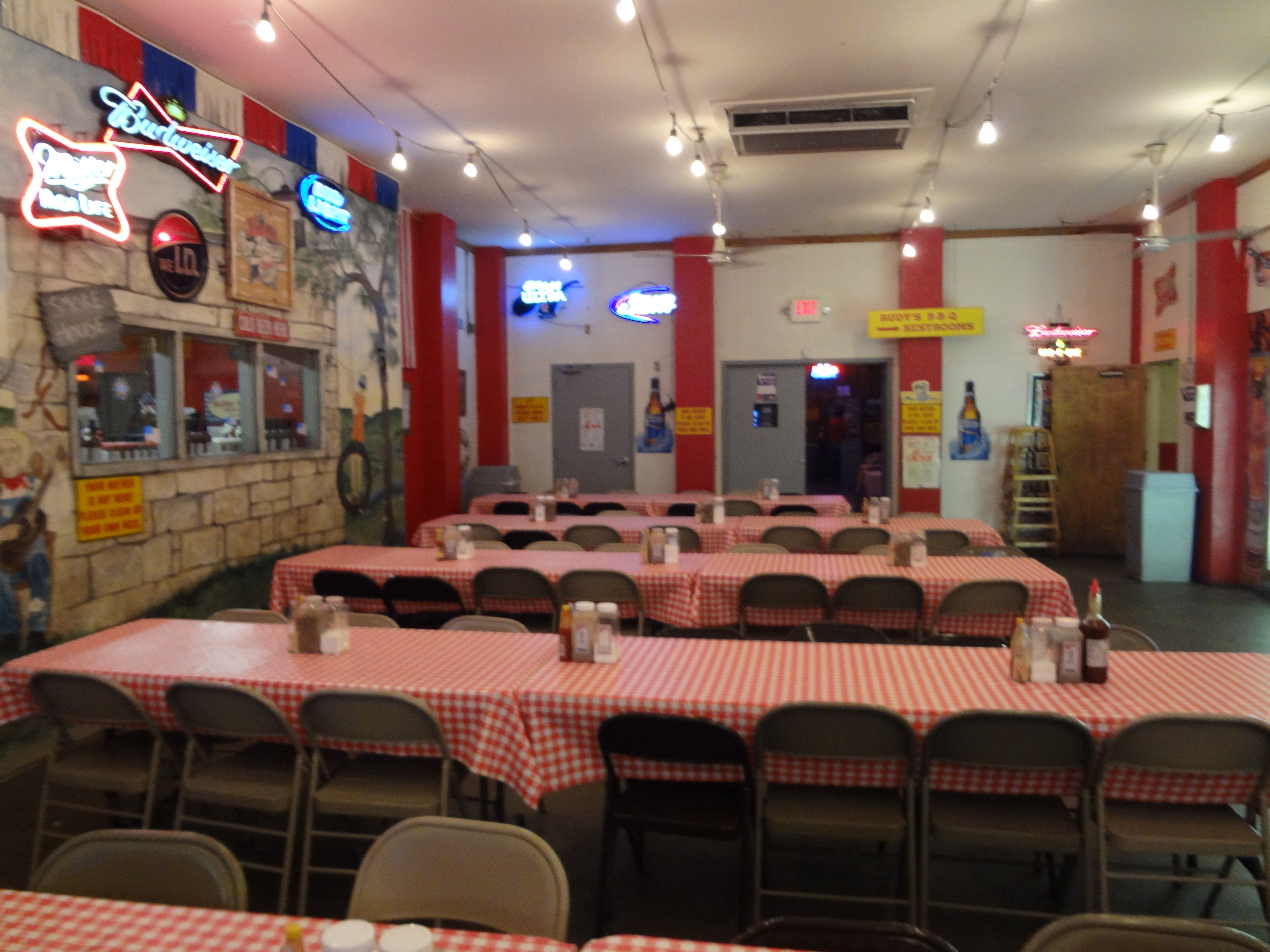We ate outside. The Barbeque was terrific. But of course I ate the lunch food in Junior High School without complaint. Still — everyone else says it’s terrific. Rudy’s is so good it has opened up a series of Rudy’s and become a bit of a chain in the San Antonio area. But the one here is the original.